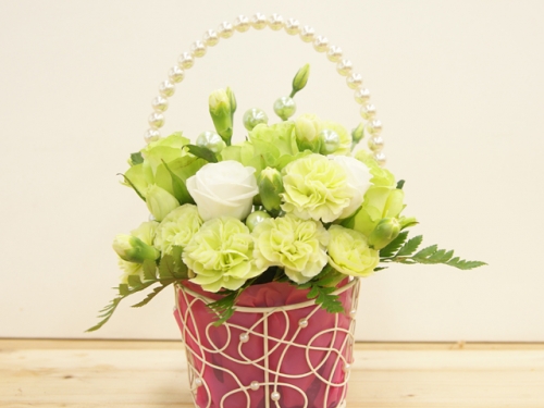 | 商品説明 | 爽やかなグリーンのお花でまとめたフラワーアレンジメントです。コンパクトなサイズでちょっとしたお気持ちのギフトに最適な商品です。 |