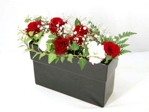 | 商品説明 | 赤バラをコンパクトにまとめたフラワーアレンジメントです。色使いが上品ですね。 |
