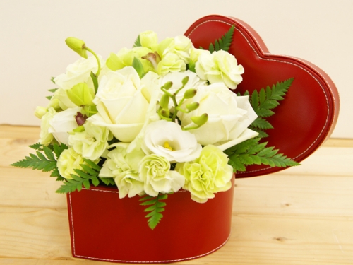 | 商品説明 | 爽やかなグリーンのお花でまとめたフラワーアレンジメントです。器がハート型になっているのが特徴的で、愛を形にしたい、そんなお気持ちにお答えできる商品です。 |