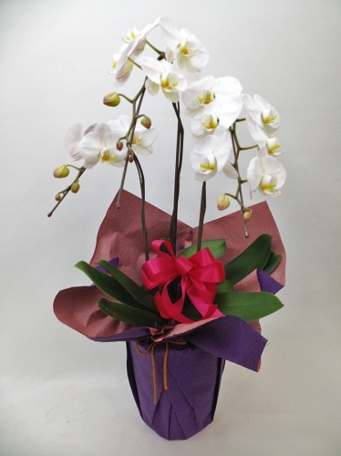 | 商品説明 | 白のかわいらしい大輪系胡蝶蘭です。少しコンパクトな大きさですが、おき場所を選ばず、個人の方のお宅でも飾っていただける商品です。白のスタンダードなスタイルが、個人の方から法人様まで幅広いご用途でご利用いただけます。 |