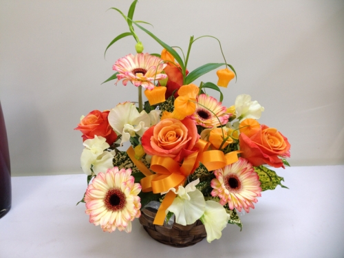 | 商品説明 | オレンジカラーのリフレッシュ元気が出る色合いで新登場!春の御祝花に最適です。 |