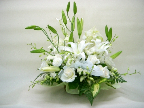 | 商品説明 | 清楚な白の花でアレンジしました。お祝いに喜ばれています。 |